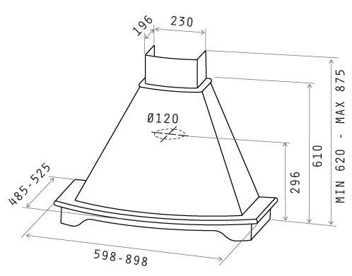 - ▪ Купольная форма улучшает захват пара над варочной поверхностью.