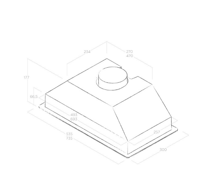 - ▪ Размеры (В×Ш×Г): 177 × 735 × 300 мм
