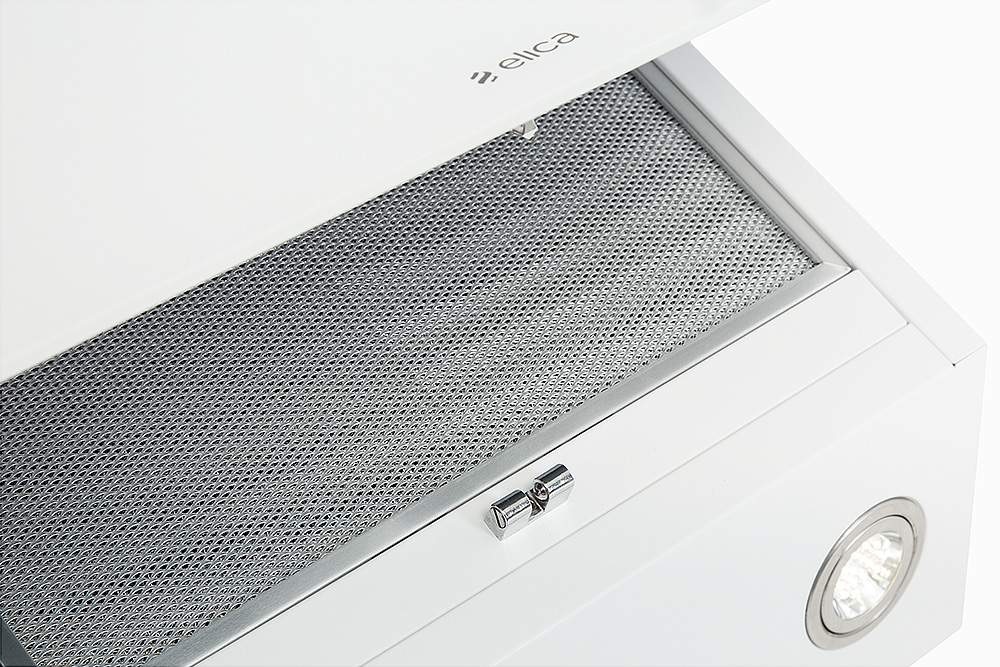 - ▪ Белое закалённое стекло добавляет современности и делает вытяжку акцентным элементом интерьера