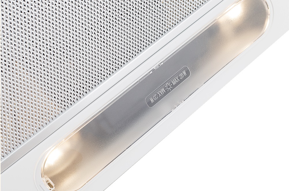 Белое оформление делает эту модель удачным выбором для светлых, компактных и современных кухонь, где важно сохранить ощущение чистоты, лёгкости и визуального порядка. Вытяжка хорошо подходит для ежедневного использования, когда нужно эффективно устранять пар, запахи и горячий воздух после приготовления. Она сочетает простое кнопочное управление, LED-освещение, два режима работы и удобный компактный формат для небольших кухонных пространств.