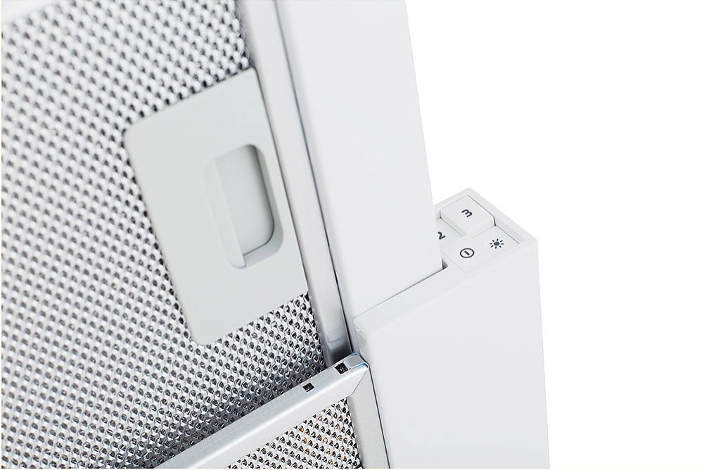 - ▪ Телескопическая конструкция — вытяжка компактно встраивается в шкаф и удобно выдвигается во время работы.