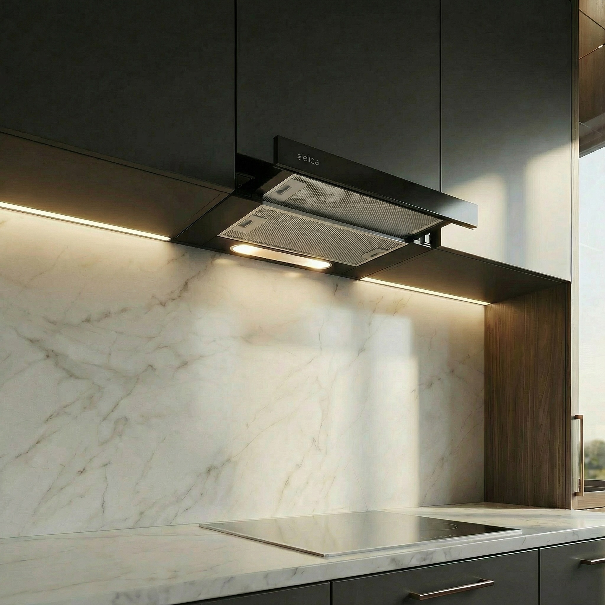 Кухонная вытяжка Elica TT14 PLUS BL/A/60 — это удобное решение для тех, кто хочет сохранить больше полезного пространства в кухонном шкафу и при этом получить эффективную очистку воздуха во время ежедневного приготовления пищи. Телескопическая конструкция позволяет вытяжке оставаться максимально незаметной в интерьере, а выдвижная панель обеспечивает удобный доступ к рабочей зоне именно тогда, когда это нужно. Такой формат особенно практичен для современных кухонь, где ценится функциональность без перегрузки мебельного гарнитура.