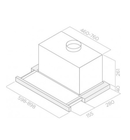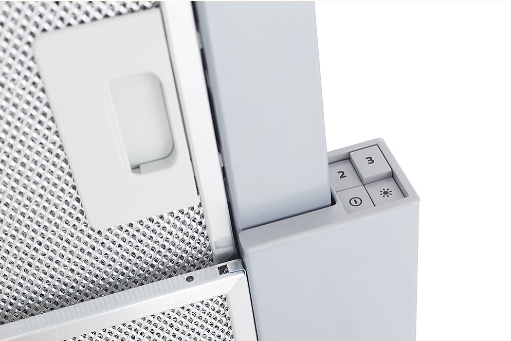 - ▪ Телескопическая конструкция — вытяжка компактно встраивается в шкаф и выдвигается только во время работы.