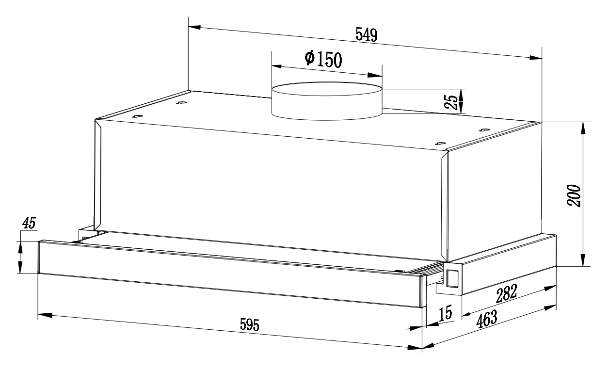 - ▪ Высота: 200 мм ▪ Глубина: 282 мм ▪ Ширина: 595 мм